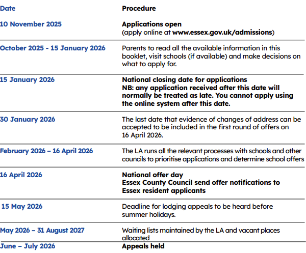 Email: admissions@essex.gov.uk Telephone: 0345 603 2200